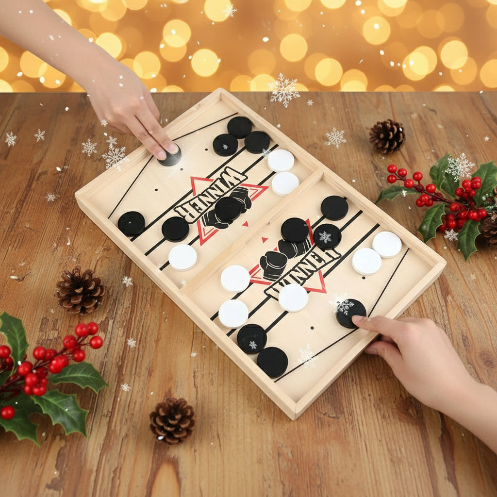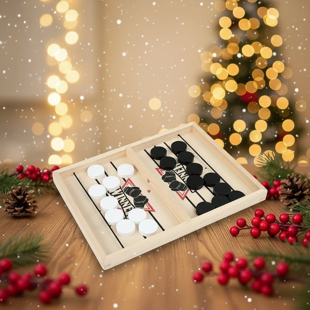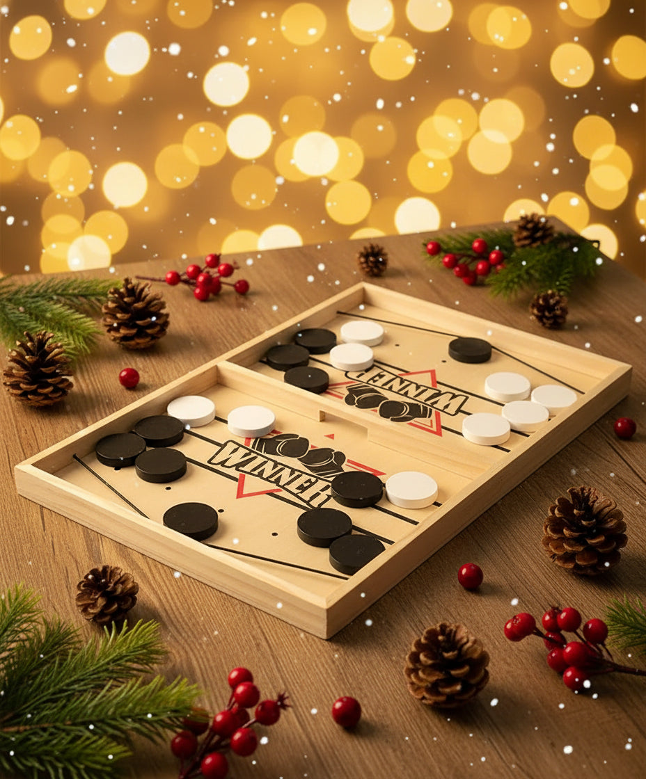 Wyróżnij się z BITWĄ NA KRĄŻKI – Edycją Świąteczną 2025 – limitowaną wersją najszybszej gry stołowej w Polsce! Drewniana plansza premium z grawerowanym logo „WINNER” i 20 ciężkimi krążkami w kolorach taktycznej czerni i bieli. Emocje jak na prawdziwej bitwie – w kilka sekund zamieniasz wigilijny stół w pole walki! Wytrzymała konstrukcja z litego drewna sosnowego + ultra-szybkie gumy sprawiają, że gra przetrwa nawet najbardziej szalone rodzinne wojny. Idealna na prezenty pod choinkę, imprezy sylwestrowe i domowe turnieje o tytuł Mistrza Domu.