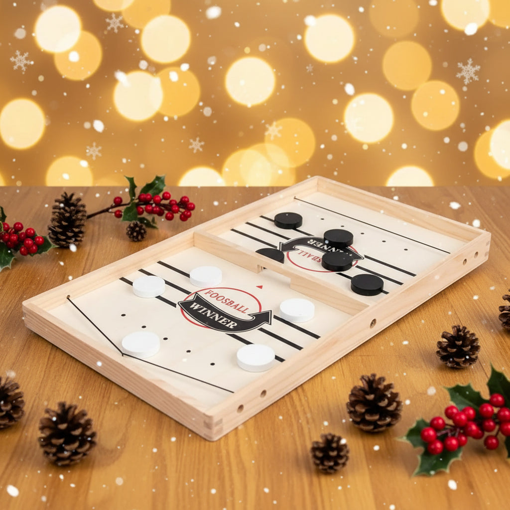 Kompaktowa plansza 35 cm długości zmieści się wszędzie, a emocje jak na stadionie! Każdy krążek ma 2,4 cm i perfekcyjną wagę strzelasz i trafiasz w pole przeciwnika szybciej niż myślisz 😂